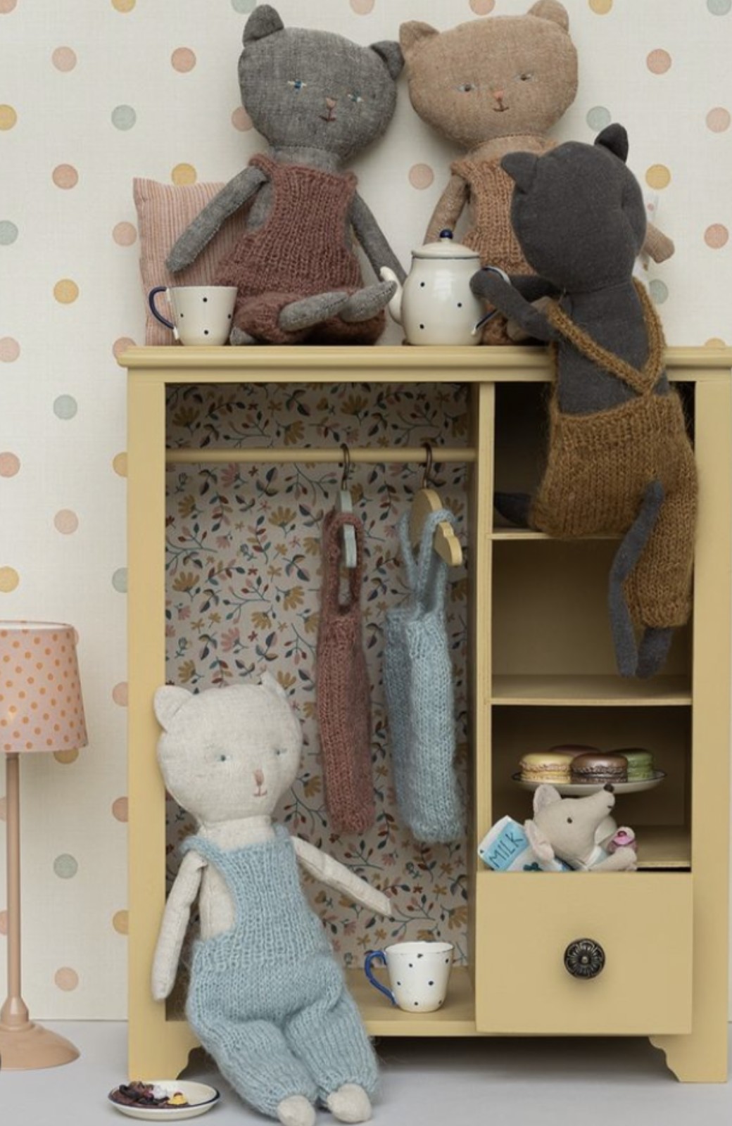 Celui-ci se présente dans une salopette en maille douce et s’adapte à tous les meubles Maileg en taille mini.
