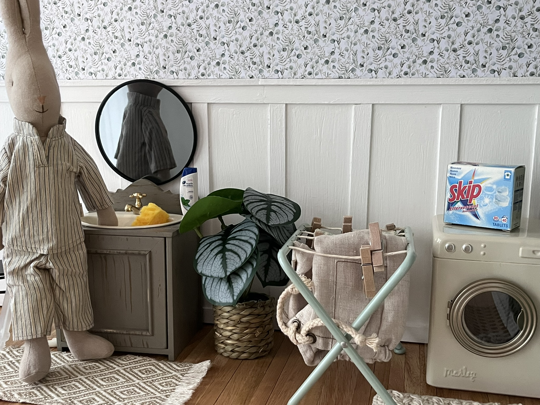Un joli meuble Maileg avec lavabo de style vintage à installer dans la salle de bains de la Maison de poupées Maileg.