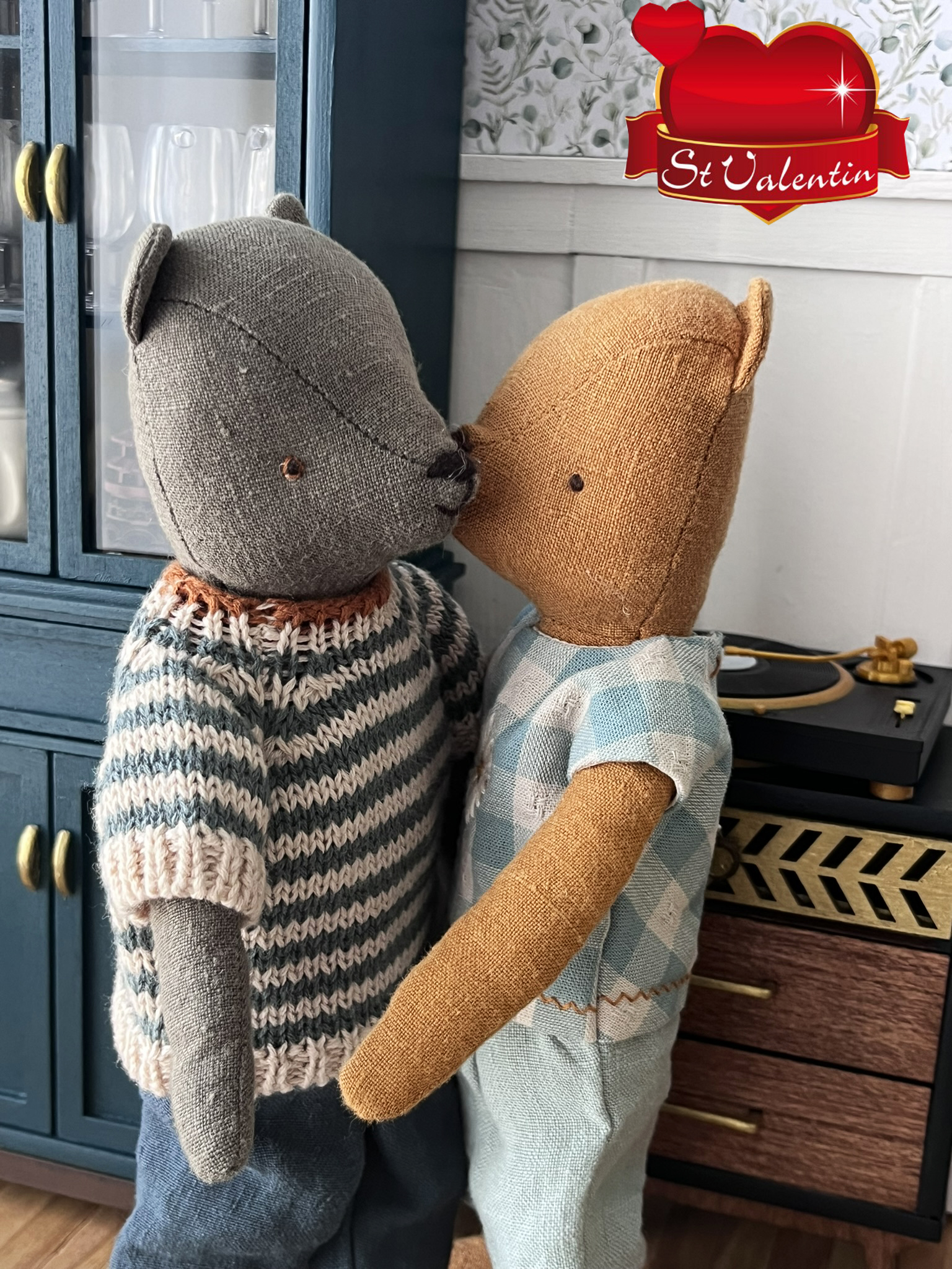 les ours sont en lin très doux et, de part leurs tailles, ils vont pouvoir se faufiler partout pour des câlins mais aussi pour jouer et se raconter plein d’histoires.